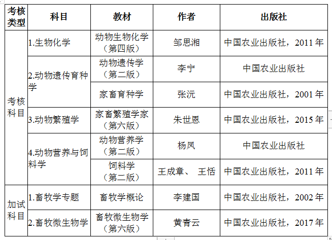 学科方向课程为动物育种学或动物繁殖学或动物营养与饲料学(试卷满分100分,考试为闭卷考试,考试时间2个小时),该课程考试成绩计入申请人的总成绩,占总成绩的10%;考试时间:2020年5月17日下午。考试地点:星空app平台官网畜产楼。